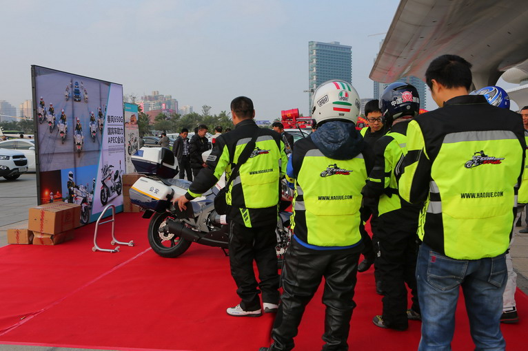 2014海南警用裝備博覽會在海口舉行,自由之旅車隊早上到來捧場。