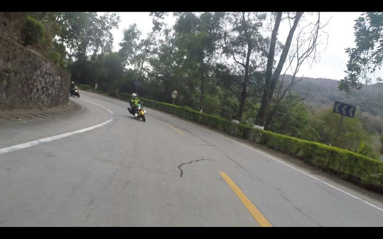 先看看路況,比昨天的萬(wàn)隆彎道有過(guò)之而無(wú)不及,加上海拔攀升起伏,較多的過(guò)路車(chē)輛,全程必須小心駕駛。