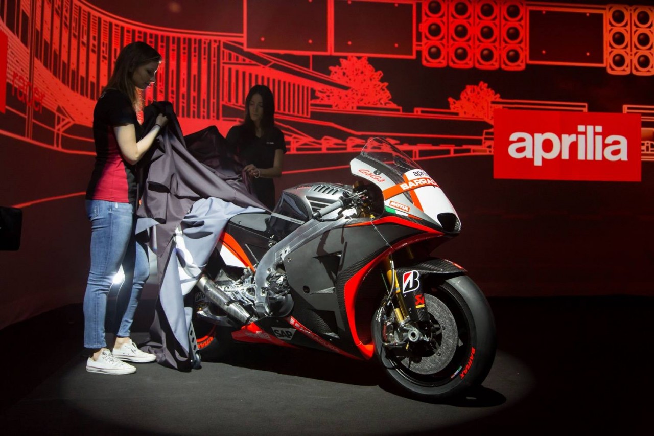 Aprilia今天正式在義大利發(fā)表他們的2015年MotoGP賽車(chē),隨著Alvaro Bautista和Marco Melandri親手掀開(kāi)覆蓋在RS-GP上面的布,意味著義大利車(chē)廠正式回歸這個(gè)頂級(jí)賽事.