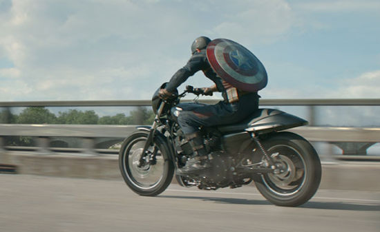 哈雷戴維森這個老牌,似乎和超級英雄“科幻”超現(xiàn)實形象不太接近的廠商近年來也有大動作。先是在《美國隊長1:第一個復仇者》中,讓美隊跨上了WLA軍用摩托車,對應劇情時間和美隊的軍人形象,這種組合還是相當符合邏輯的,實際效果也相當?shù)撵趴帷?/p>