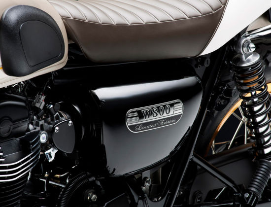 川崎公司宣布于2015年4月15日發(fā)售一款W800限量版,整體采用50-60年代的復(fù)古噴涂方案,以金屬米色為主導(dǎo)色調(diào),引擎為黑色。