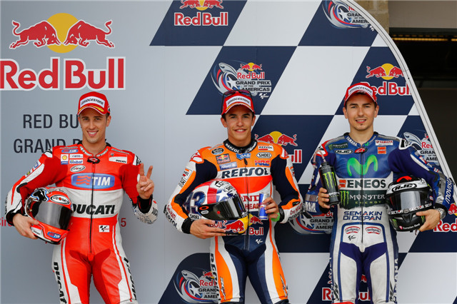 核心提示:MotoGP美國站剛剛落下帷幕,馬奎斯以壓倒性優(yōu)勢摘得該站冠軍。Andrea Dovizioso騎杜卡迪GP15率先發(fā)車,馬奎斯緊隨其后,與Dovizi
