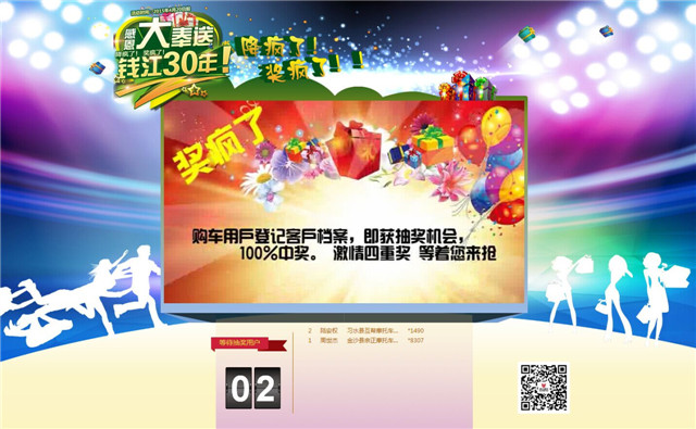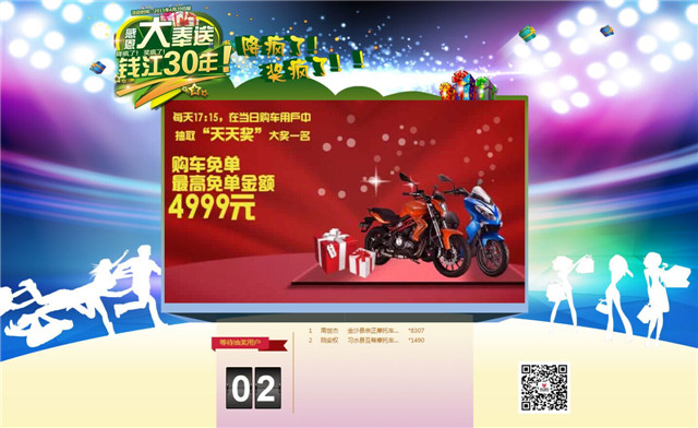 活動(dòng)結(jié)束后對(duì)所有在活動(dòng)期間購(gòu)車(chē)登記成功、關(guān)注“錢(qián)江摩托”微信公眾服務(wù)號(hào)且在微信登記身份信息的用戶(hù)進(jìn)行抽獎(jiǎng),獲獎(jiǎng)名額10名。