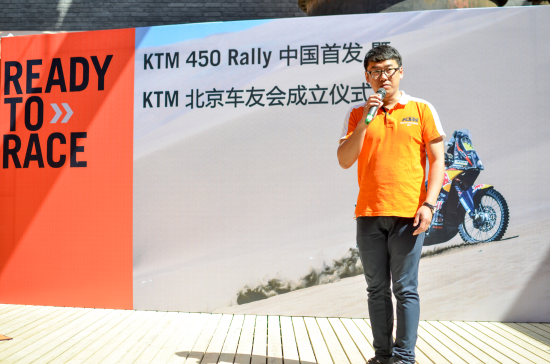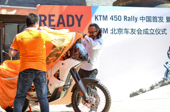 2015年4月25日,連續(xù)14年奪得達喀爾冠軍的老牌勁旅KTM在KTMR2R北京店舉行了KTM 450 RALLY首發(fā)儀式,同時KTM在中國的首個車友會——KTMR2R北京車友會也宣布成立。KTMR2R廠商代表李寧先生,紅牛KTM車隊車手、2011環(huán)塔克拉瑪干拉力賽摩托車組總冠軍趙宏義先生,以及50多位KTM車主出席了本次活動。
