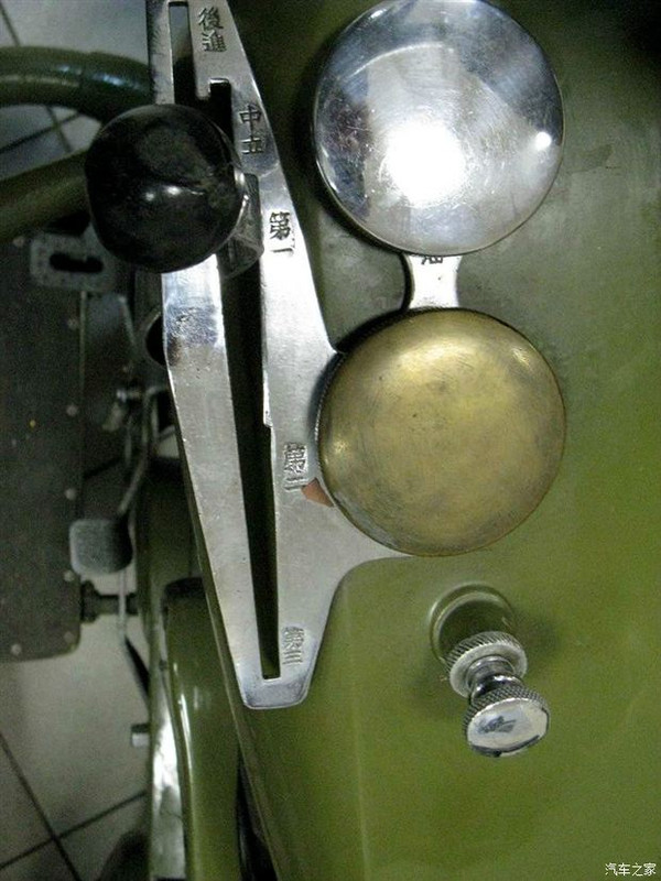 “97陸王”的傳動(dòng)機(jī)構(gòu)匹配了一臺(tái)3前速手動(dòng)變速器(并附帶1個(gè)倒車檔)??梢钥吹綋Q擋桿位于燃油箱左側(cè),這與日本實(shí)行做多行車原則相呼應(yīng)。在換擋剛右側(cè),銀色圓蓋是汽油箱蓋,黃銅材質(zhì)的圓蓋是固定換擋指示框的,當(dāng)然在必要的時(shí)候可以將其拆卸。