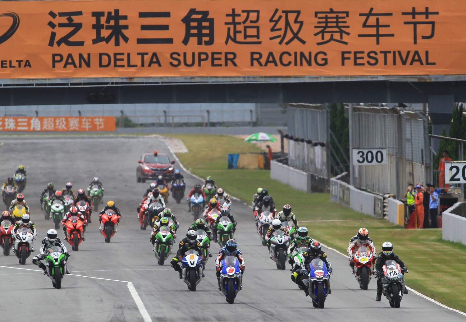2015年6月21日下午2:15,在經(jīng)歷了讓人眼花繚亂的紅牛飄移大賽之后,泛珠超級摩托車組的賽車駛上賽道,即將開始的是一場國內(nèi)最頂尖的“肉包鐵”的超級摩托爭奪戰(zhàn)。作為本站比賽圈速最快的車種,超級摩托危險(xiǎn)而又刺激,對賽車尤其是車手的技術(shù)水平要求很高,同時(shí)又因?yàn)橘惖缹掗熑菀壮?,所以這個(gè)比賽一直以來就是泛珠的重頭戲之一。