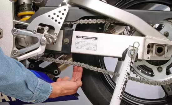鏈條是摩托車(chē)重要的動(dòng)力傳導(dǎo)裝置,如果鏈條太松,會(huì)降低發(fā)動(dòng)機(jī)的動(dòng)力傳導(dǎo)效率。太緊又會(huì)加劇鏈條及鏈輪的磨損,甚至有可能導(dǎo)致后輪的突然鎖死,正確調(diào)整好鏈條松緊很重要,一般在鏈盒部位都有標(biāo)注上下活動(dòng)區(qū)間,請(qǐng)注意觀察。