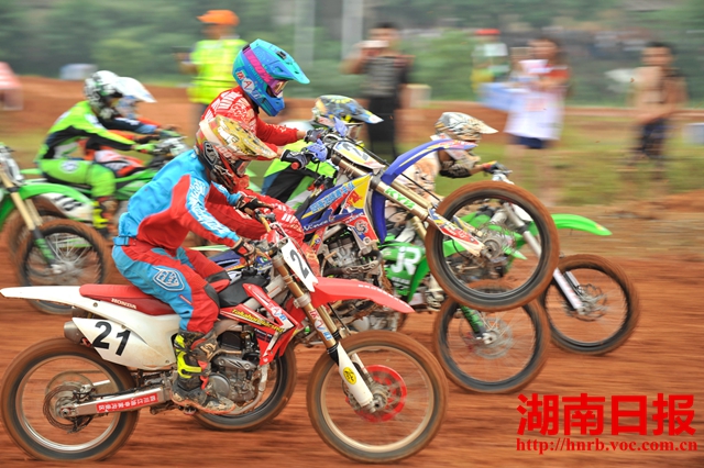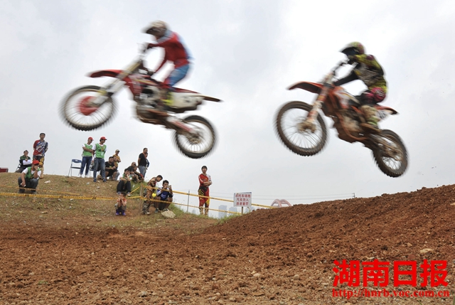 車選手在進行第二場賽。當日,2015全國摩托車越野錦標賽(長沙站)完美收官。來自全國10余個省(市、自治區(qū))的20余支頂尖越野摩托車車隊經(jīng)過激烈角逐,最終產(chǎn)生了各級別組的的個人冠軍和團體冠軍。