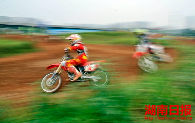 核心提示: 7月5日上午,長沙市岳麓區(qū)濱江新城摩托車越野運動中心,摩托車選手在進行第二場賽。當日,2015全國摩托車越野錦標賽(長沙站)