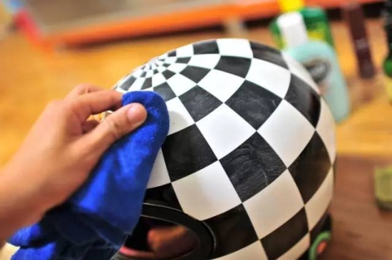當(dāng)大面積推勻之后,不難發(fā)現(xiàn)很多小細(xì)縫還會(huì)有殘留蠟痕,可以用布將這些小角落進(jìn)行擦拭,直到看不見蠟痕為止。如果你手邊沒有液態(tài)蠟,只要固態(tài)蠟,其實(shí)也可以。只要先用海綿將蠟涂抹在頭盔上,再用棉布推均勻即可!上蠟的好處在于避免灰塵附著、下雨時(shí)本身會(huì)形成撥水效果,說白了也就更耐臟!