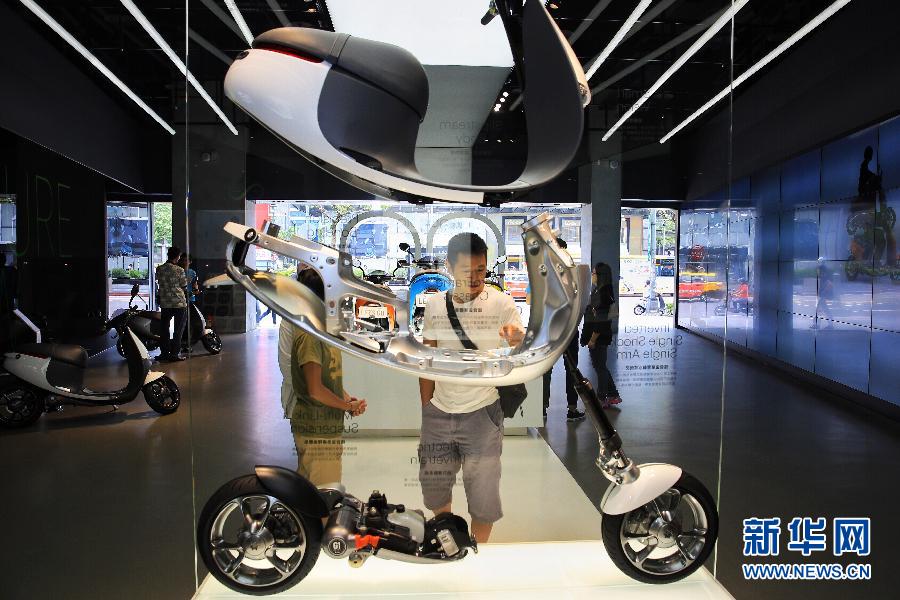 核心提示:7月17日在臺(tái)北市g(shù)ogoro體驗(yàn)中心拍攝的智能電動(dòng)摩托車。新興臺(tái)灣電動(dòng)摩托車品牌Gogoro智慧雙輪將在7月25日向預(yù)購(gòu)用戶正式交車。據(jù)