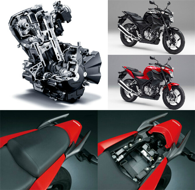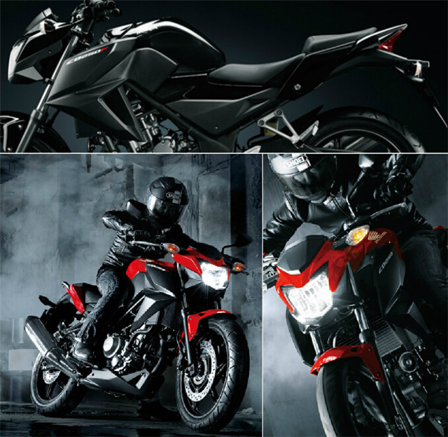 Honda精品級入門街車CB250F,早在2014年夏天推出市場。車架、避震和制動系統(tǒng)都來自CBR250R。引擎也是CBR250R的四沖水冷單缸MC41E機(jī)器,峰值馬力和扭力分別是29ps和2.3kg-m。CB250F的車頭部份和兩側(cè)啡呤經(jīng)過修改,塑造街車風(fēng)格和采用新的車身配件來修飾引擎汽缸頂和散熱水箱。