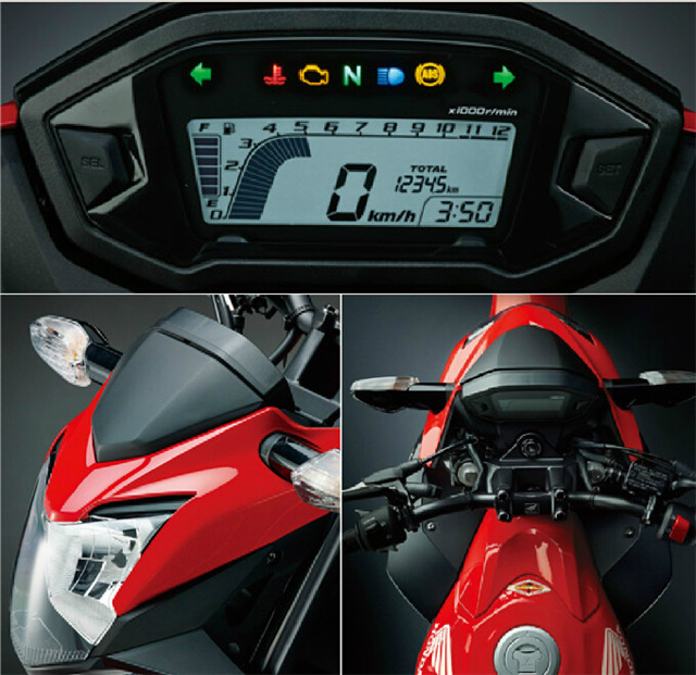 CB250F有全新設(shè)計的表板和頭燈,當(dāng)然還有街車化較高的轉(zhuǎn)向把手。至于車尾部份、死氣喉和前后座位連扶手都沿用CBR250R跑車設(shè)計。