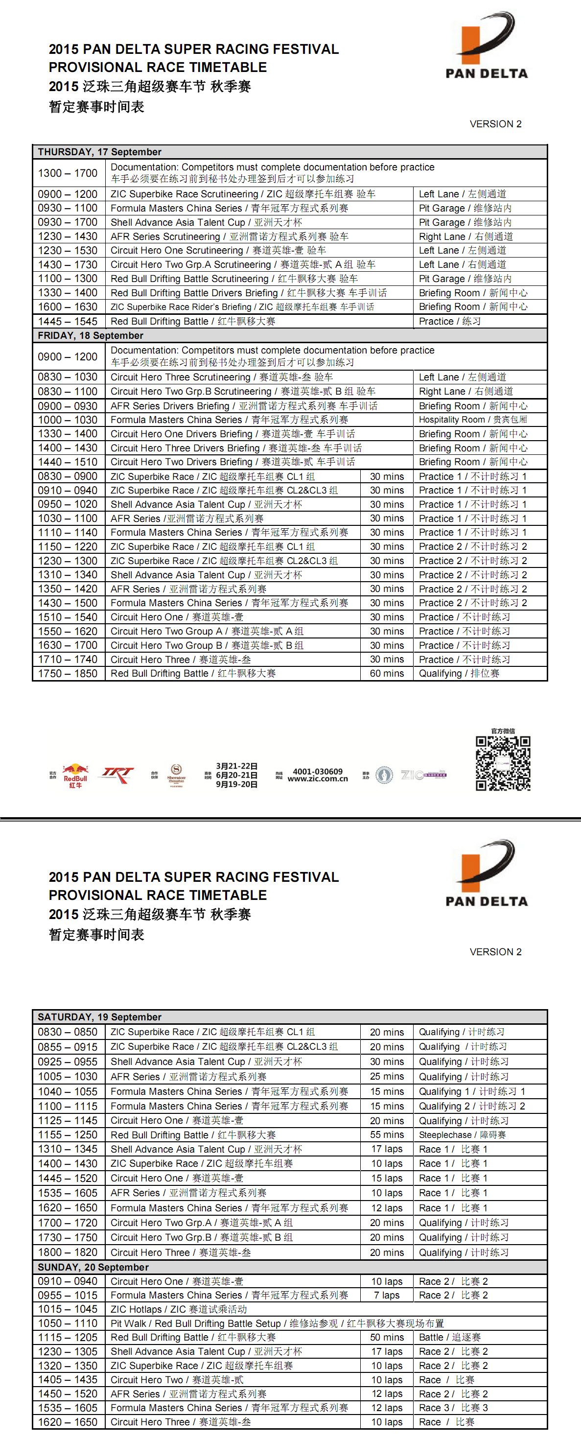 2015泛珠三角超級(jí)賽車節(jié)秋季賽——暫定賽事時(shí)間表