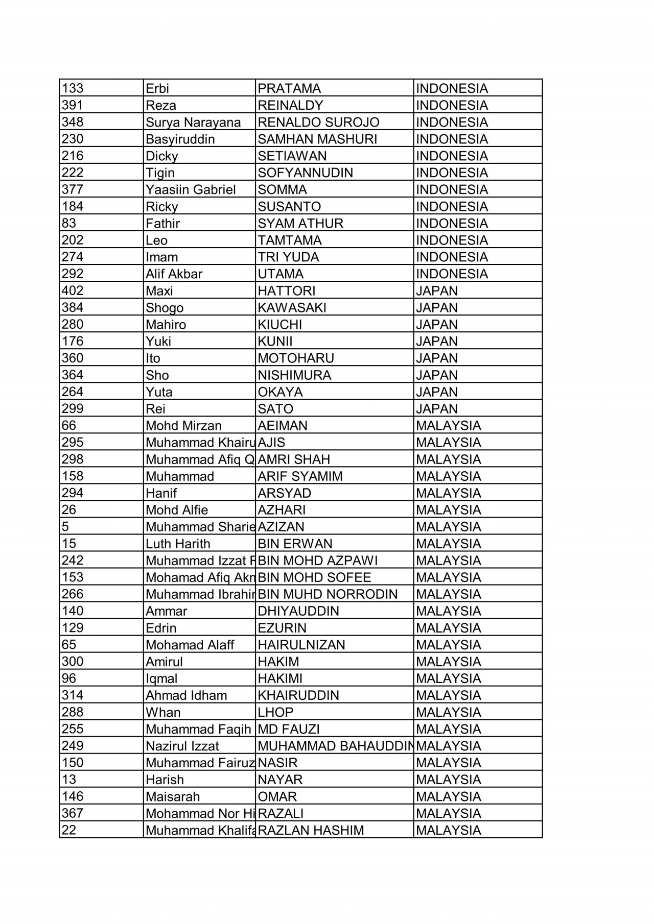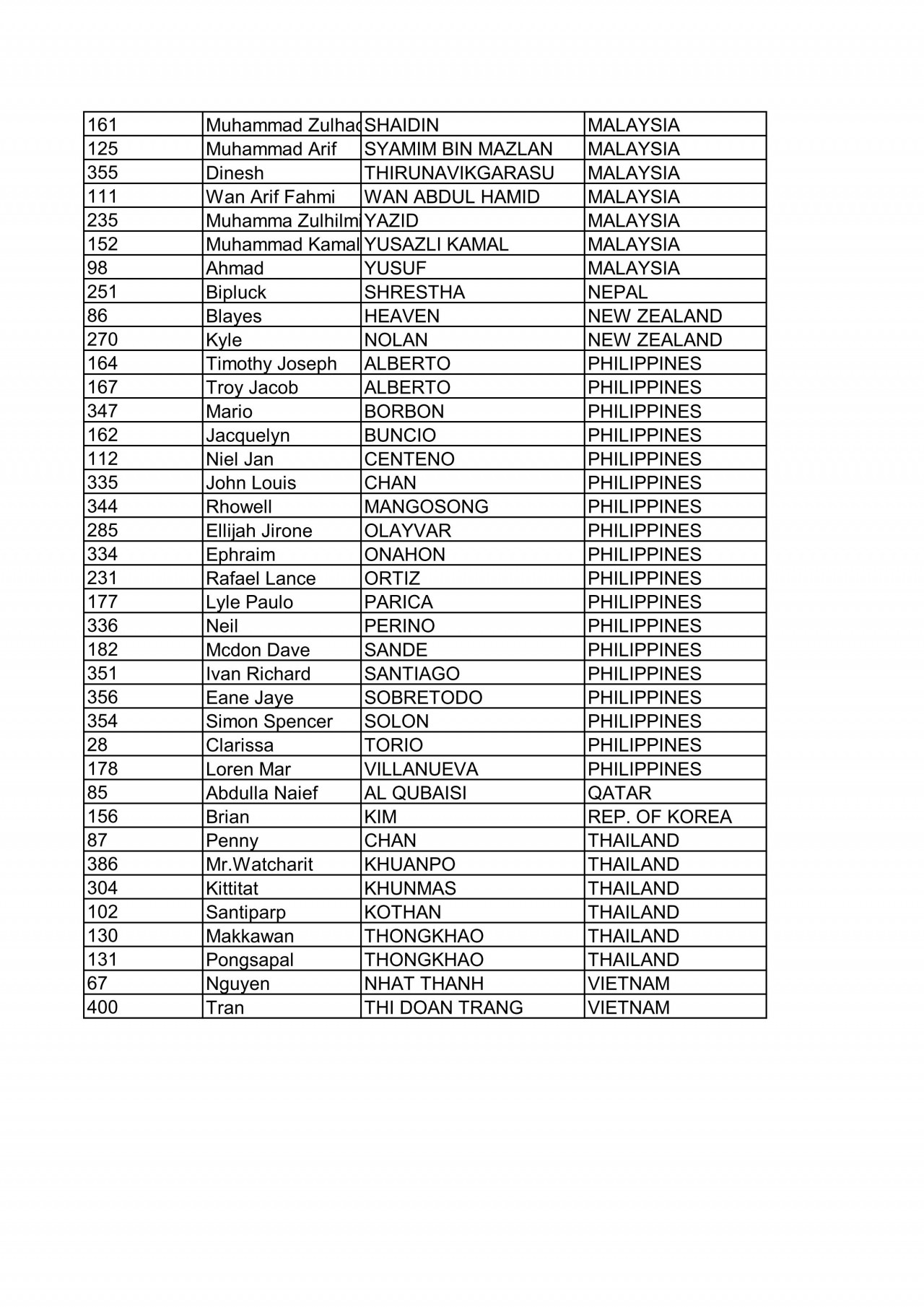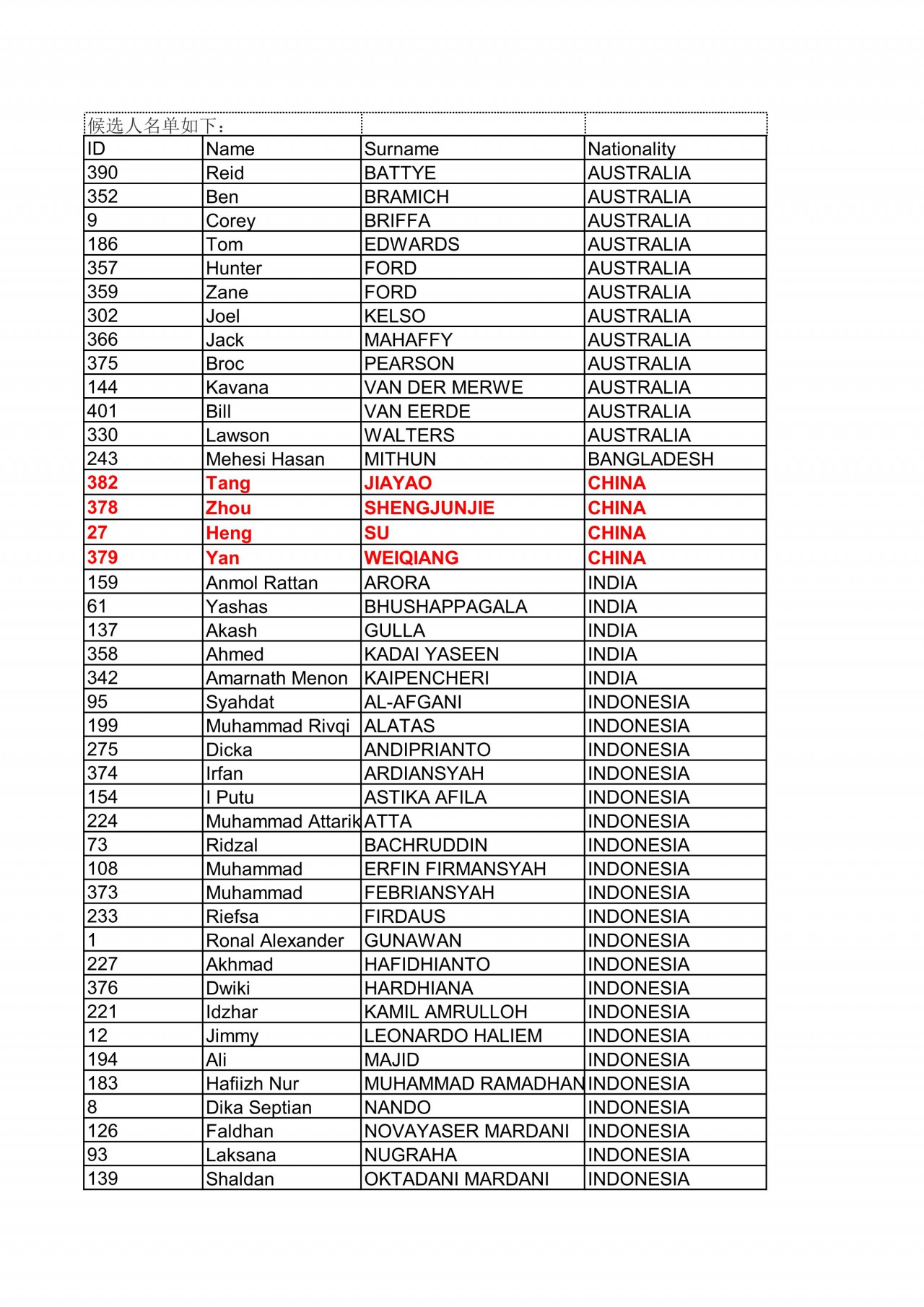 2016’ 亞洲天才杯(Asia Talent Cu)選拔賽名單