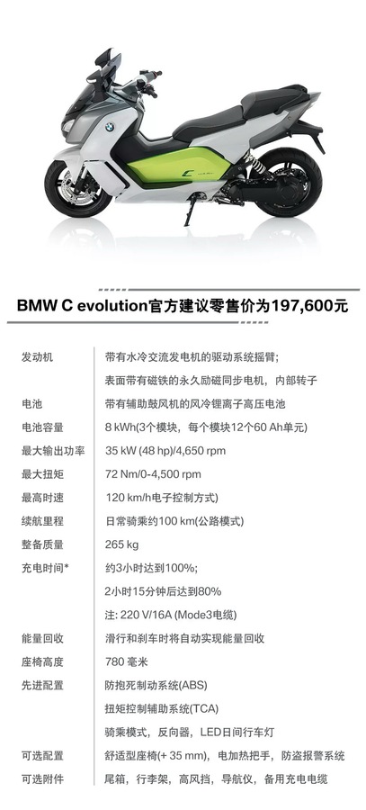 值得一提的是,BMW Motorrad為C evolution選配了兩輪車輛中前所未有的能量再生系統(tǒng),在車輛慣性滑行或制動時,均會自動進行能量回收,增加續(xù)駛里程。