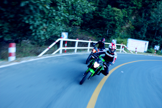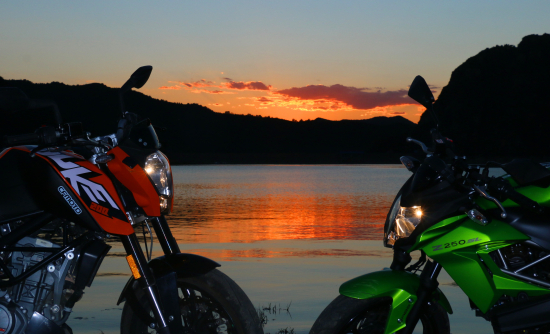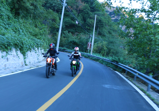 經(jīng)過一天的山路和高速路的測試后,200 DUKE和Z250SL 的操控性也是不分伯仲但特性各異。200 DUKE前倒置式減震性能不俗并在視覺效果上也更上檔次,而Z250SL后懸掛采用連桿式設(shè)計更有利于運(yùn)動駕駛。減震調(diào)校200 DUKE偏于舒適、Z250SL更加趨于戰(zhàn)斗、硬朗些。200 DUKE的操控更趨向于越野車,更加靈活也更容易做出細(xì)膩的操控動作;而Z250SL則注重過彎的穩(wěn)定性,更趨向于跑車。