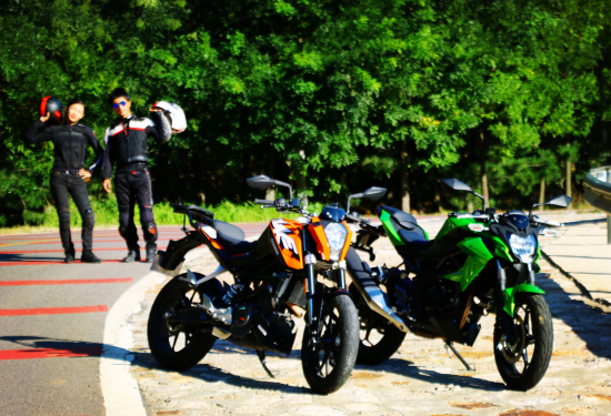 感謝北京風(fēng)火輪摩托車有限公司(北京川崎代理商)和北京博銳摩托車有限公司(北京KTM代理商)提供試駕車輛,本次試駕出鏡女騎手為摩托車雜志編輯李彤。  要說大培子到底喜歡哪輛?“野心”還是“野性”呢?KTM 200 DUKE個性鮮明、操控靈敏、容易上手更具多面性;而川崎外形動感炫酷、動力性能超群、具有極強(qiáng)的運(yùn)動特質(zhì),各有千秋、不分伯仲。我真是都喜歡啊,那就都買唄,我K!你給錢???玩笑了。反正它們各自特性以及優(yōu)缺點(diǎn)我都說了,你們自己糾結(jié)去吧,大培子和您撒由那拉嘍,夠“欠兒”的吧?歡迎關(guān)注新浪摩托“培”你解惑,歡迎關(guān)注大培子。