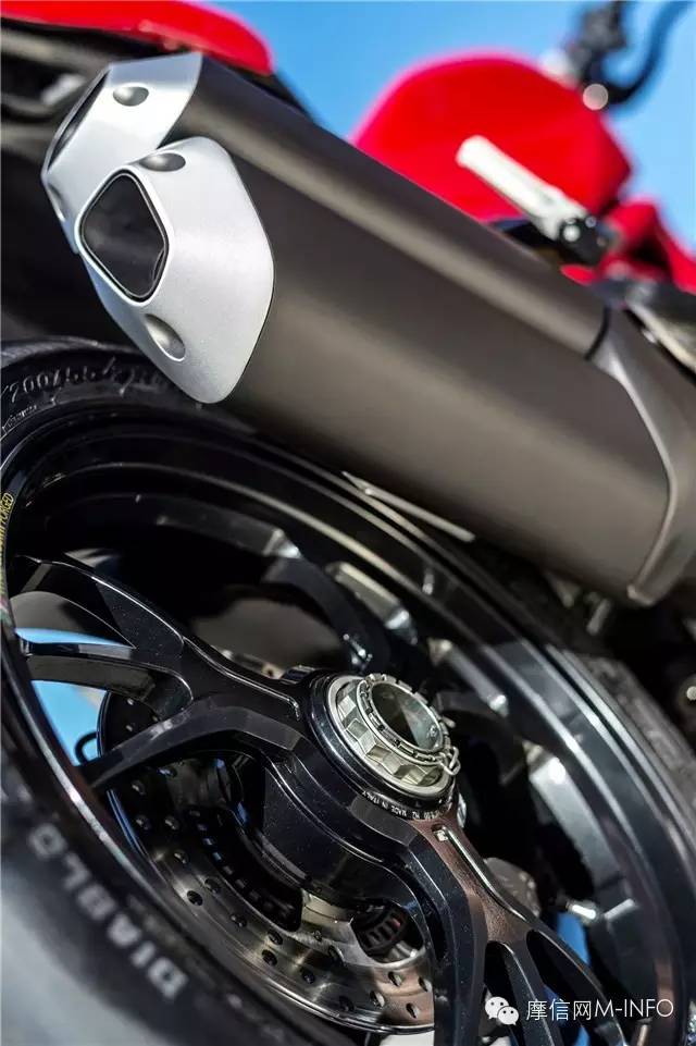 新的Marchesini鋁壓鑄輪轂在輕量化的同時,還保持相同的重量,搭配Panigale同款的Pirellis超大的200系列后胎,保證完美抓地。剎車系統(tǒng)同樣是采用超規(guī)格賽車風格的Brembo M50卡鉗配合330mm剎車盤來保證安全。