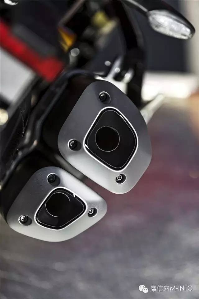 新的消音器造型處理也跟1200S不同,與腳踏部位分開,互不干涉。尾段的造型也直接變化為雙出排氣,聲浪與之前相比也非同凡響。