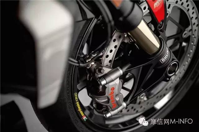 新的Marchesini鋁壓鑄輪轂在輕量化的同時,還保持相同的重量,搭配Panigale同款的Pirellis超大的200系列后胎,保證完美抓地。剎車系統(tǒng)同樣是采用超規(guī)格賽車風(fēng)格的Brembo M50卡鉗配合330mm剎車盤來保證安全。