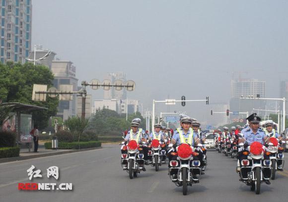 儀式結(jié)束之后,100輛豪爵電噴節(jié)能警用摩托車駛出東方紅廣場,進行了簡單而雄壯的方陣巡游,充分展示湘潭公安形象。