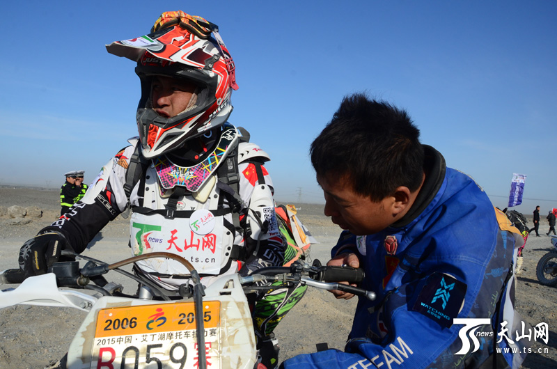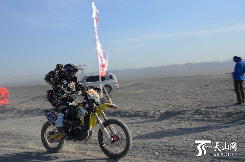 當(dāng)天,第十屆環(huán)艾丁湖摩托車(chē)拉力賽舉行第一賽段的比賽,全長(zhǎng)213公里的賽段,途經(jīng)戈壁灘、山路,雖然路面多為成型路面,但因?yàn)轱L(fēng)沙天氣,車(chē)手們的發(fā)揮受到很大影響。