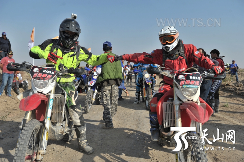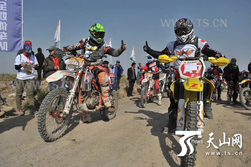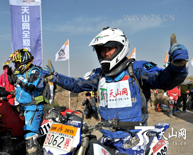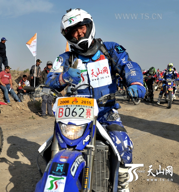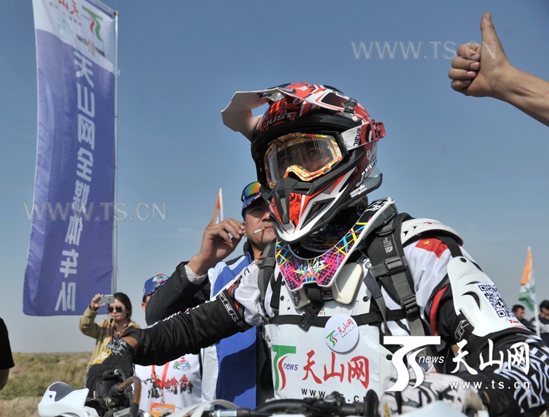 核心提示:天山網(wǎng)全媒體車隊(duì)車手馬新在賽道起點(diǎn)準(zhǔn)備發(fā)車。天山網(wǎng)吐魯番訊(記者庫(kù)爾班江尤努斯攝影報(bào)道)10月19日,第十屆環(huán)艾丁湖摩托車?yán)?/div>