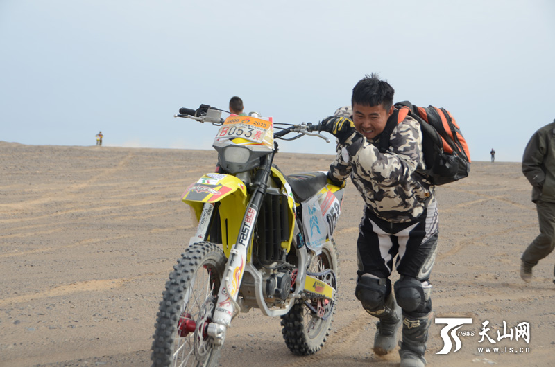 沒有人知道,他是從什么時候開始,用稚嫩的身子骨,推著100多公斤重的摩托車,在柔軟的沙地上一步一步艱難地向終點(diǎn)靠近的,但所有人都能從他痛苦得扭曲的臉上,讀懂他的堅(jiān)持。