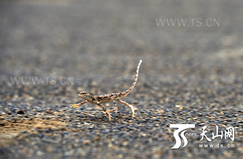 賽道里一只好奇的小蜥蜴。