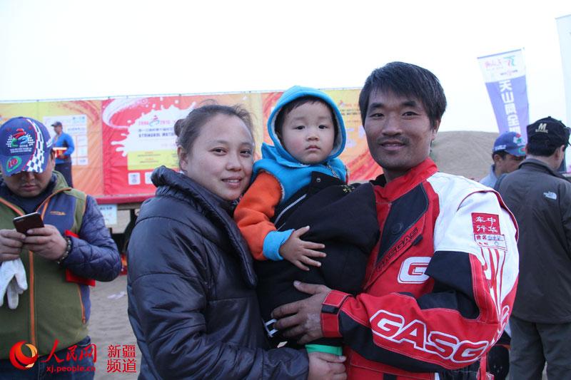 山東車手白中華也把他的妻子和孩子帶到新疆。白中華說,來新疆參賽一次十分不容易,借此次參賽的機會也好讓家人領略一下新疆的自然風光和民俗風情。我們車手能堅持這么多年,沒有親友的支持是走不到今天的,有他們在我們身邊,我們更添必勝的信心和動力。