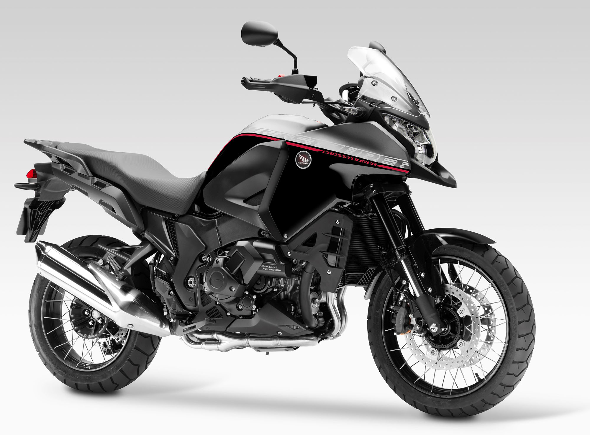 VFR1200X Crosstourer “ 越野觀光者” 的首度面市是在 2012 年,是 Honda 在大型探險車(Adventure)領域的最大排汽量產品。新的 2016 版本沿用了原來的水冷四沖程 V 型 76° 四汽缸、OHC(Unicam)每汽缸四汽閥的發(fā)動機,排汽量 1,237 cc,節(jié)汽閥口徑為 44 mm 的 PGM-FI 電子燃油噴注系統(tǒng),六檔的變速箱(可選 DCT 雙離合),最大動力輸出 95 kw/129 匹。與現(xiàn)行的 2015 款相比,新的 2016 版本對應即將強制執(zhí)行的歐四(歐盟市場)、升級了排放標準;對可選裝的 DCT 雙離合進行了升級,新版本的 DCT 系統(tǒng)能夠對車輛正在上坡、下坡狀態(tài)進行自動檢測,并相應地進行換檔動作。而廠方表示,鑒于 DCT 系統(tǒng)帶來了諸如降低城市駕駛的壓力與疲勞、更加耐用(齒輪的磨損相對較低)等等的好處,超過一半的現(xiàn)有 VFR1200X “ 越野觀光者” 客戶選擇了 DCT 版本的車型。