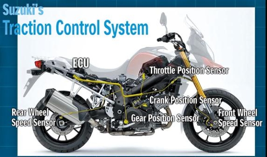 2014款V-Strom 1000是首款配置牽引力控制系統(tǒng)(S-TCS: SUZUKI Traction Control System也就是常說的循跡系統(tǒng))的鈴木摩托車。該系統(tǒng)持續(xù)密切的監(jiān)測前后輪速度、扼流閥位置傳感器、曲柄位置傳感器、檔位傳感器等部分的實時狀況,一旦發(fā)現車輪出現打滑的跡象,立即以四千毫秒的速度管理點火正時和進氣量,有效控制動力輸出。2014款V-Strom 1000提供三段STCS模式:模式Off即使后輪出現打滑STCS也不會干預動力輸出,建議有經驗的騎士或在特定情況下使用;模式1 敏感度較低車輪打滑到一定程度后,STCS才會開始干預動力輸出;模式2為最高敏感度模式,車輪只要出現打滑跡象STCS系統(tǒng)會迅速響應并介入干預動力輸出,直至打滑跡象消除,建議新手騎士或濕滑路面使用。配置了引力控制系統(tǒng)大大提升運動性能(出彎可以更早的加油)和安全保障,可以讓速度更快、心可以更踏實。牽引力控制系統(tǒng)的引入對鈴木來說有著決定性意義,是否意味著鈴木摩托車的電控時代即將來臨?