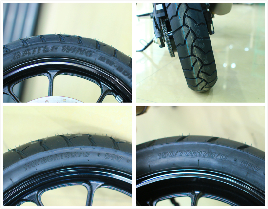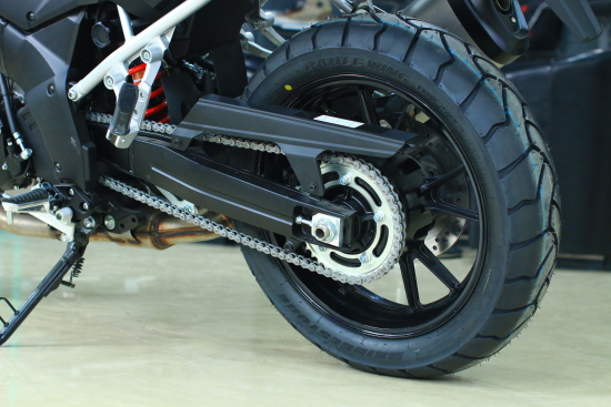 19寸前輪、17寸后輪十輻式鋁輪轂,出廠裝配普利司通戰(zhàn)翼BW-502輪胎。前輪胎規(guī)格為110/70-17,后輪胎規(guī)格為150/70-17。原廠輪胎在公路上的抓地性能尚佳,但在沙土、泥濘路面真是“只見轉速不見速度”;而在運動駕駛當車體傾角達到約30度左右時,因輪胎觸地弧度問題會導致操控段落感。大培子本人只關注輪胎的性能以及用途,對寬窄......