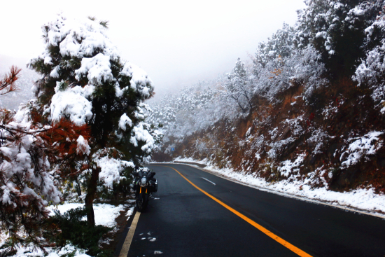 大培子為測試V-Strom 1000牽引力控制系統(tǒng)的實際效能,在地表已形成地穿甲(薄冰)的情況下“冒死”選擇雪后進山壓彎。起初以60公里/小時速度過彎,車輛仍可以保證穩(wěn)定狀態(tài)(STCS工作指示燈頻繁閃動),而后關閉了牽引力控制(真不是因為技高人膽大而是出現了不咗不會死的心理反應),車輛立即因打滑而完全失控,因為運氣好才使得人車毫發(fā)無傷,請騎士們千萬不要效仿以上行為。