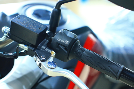 2014款V-Strom 1000前制動反應非常靈敏,制動力度和穩(wěn)定性的實操效果讓大培子感到非常滿意。但是這套制動系統(tǒng)的反應有點過于靈敏,大培子實際測量發(fā)現該制動體系采用小活塞大供油量的設計,加之街行化整車調校,如果急收油加急前制動發(fā)生“扎頭”現象那是必須的。后制動反應相比前制動就沉溫了許多,可控性非常好。ABS介入的時機和敏感度恰到好處,在進行100公里/小時緊急制動測試時,整套制動系統(tǒng)發(fā)揮穩(wěn)定,沒有給大培子帶來絲毫緊張和心跳加速,大贊哦!可惜ABS防抱死系統(tǒng)是無法選擇關閉的,這多少算是小遺憾,因為不是所有騎士都是ABS的死忠至少在特定使用情況下。
