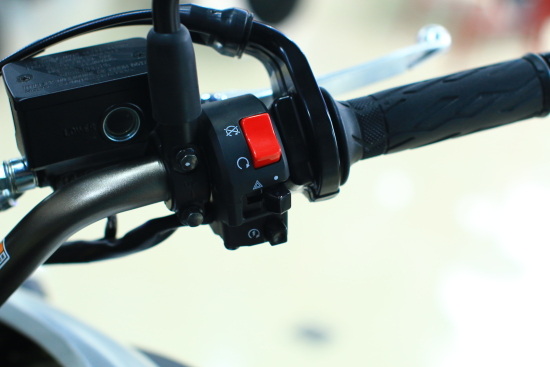 初次駕駛2014款V-Strom 1000居然沒有找到遠光燈開關!大培子的下巴立馬掉到油箱上,原來遠光燈開關被超車燈開關整合,按下為超車燈警示抬起為遠光燈照明,此設計不失為一個非常方便、貼心的人性化設計。