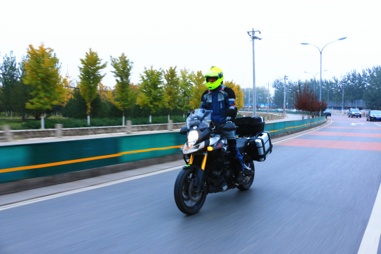 大培子駕駛2014款V-Strom 1000分別在鋪裝路面包括高速公路、砂石路、泥土路和冰雪路面進行測試。2014款V-Strom 1000騎穩(wěn)定性和操控感有相當好表現,但由于底盤較低通過能力相對不足。低速控車非常靈活,靈活到就像在駕駛一輛400cc摩托車(推、挪除外),高速行駛穩(wěn)定性可圈可點。如果用“水鳥”去對比的話:低速操控V-Strom 1000更好些,它前部的操控感比“水鳥”輕靈很多更適于在都市駕駛;在高速操控穩(wěn)定性方面“水鳥”就勝出了,尤其是在速度高于130公里/小時的情況下,V-Strom 1000明顯沒有“水鳥”來得沉穩(wěn);路感反饋V-Strom 1000比“水鳥”更清晰。