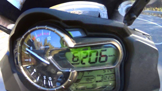 2014款V-Strom 1000在無外掛邊尾箱的情況下極速為211公里/小時(外掛邊尾箱滿載極速206公里/小時),提速、極速與其他同類競品摩托車相比屬中游水平(畢竟只有1000cc),動力輸出可控性、油門反應頗為細膩是亮點。V-Strom 1000在3000轉以下運轉有一絲不穩(wěn)定,需要短暫的適應過程,高轉速駕駛風格的騎士可以直接無視此點。發(fā)動機運轉震動非常平緩,7000轉以上震動感才有所加大,作為一款采用V缸發(fā)動機的摩托車,其震動控制可以用相當出色來形容。長途、高轉速駕駛時,水溫顯示也一直保持在中低范圍內。正常駕駛情況下V-Strom 1000的綜合油耗基本控制在8升/百公里左右(實測7箱95號汽油)。