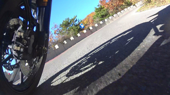 大培子在壓彎時經常會磨到腳踏探針(特意用Gopro拍攝的行進特寫),正所謂有得就有失,畢竟V-Strom 1000不是一款為彎道而生的跑車。駕駛V-Strom 1000進行長途摩旅是一件非常愜意事情,輕松又爽快!唯一的不爽來自20L的油箱容積,顯得有點寒酸,實測續(xù)航里程230-250公里倒也算夠用。
