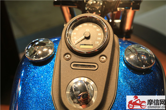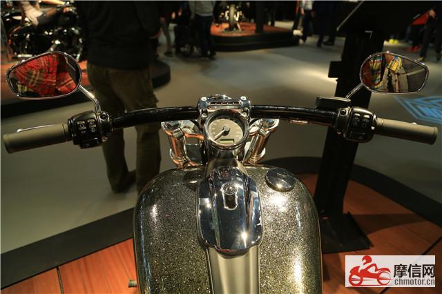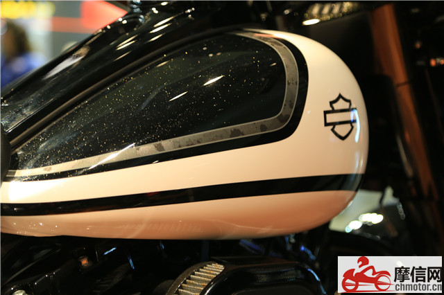 雖然只是升級(jí)款,但哈雷的新車還是頗有看點(diǎn)。全部展車多使用珠光漆,在燈光下非常好看。而一些特殊涂裝,讓哈雷的“個(gè)性化”標(biāo)簽更加明顯。以SOFTALL SLIM車型舉例,油箱上的鍍鉻裝飾被一個(gè)五角星圖案所代替,但標(biāo)志性的球形大燈和后傾式手把又保留了經(jīng)典外型。