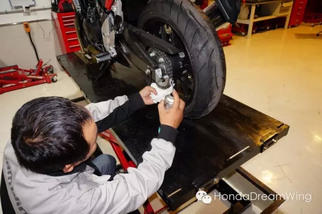 鏈條清洗干凈后噴涂專用潤滑脂,防止銹蝕,潤滑鏈軸。