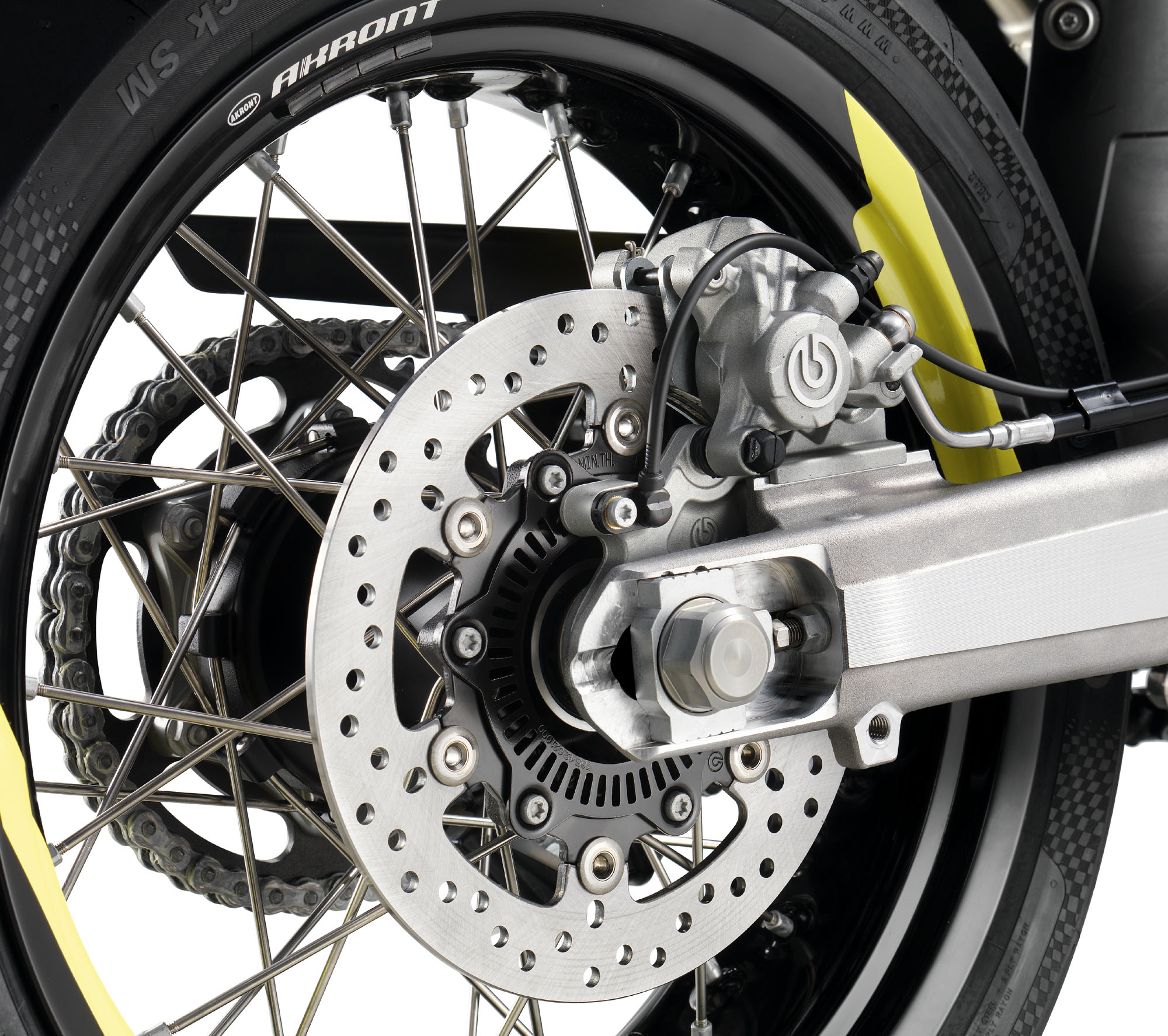 車身方面使用了人體工程學(xué)的設(shè)計(jì),車架以鉻鉬鋼制作而成,高強(qiáng)度聚酰胺的后支撐副車架,鋁合金的后搖臂,WP 的前、后懸掛,貝伯(Brembo)的制動系統(tǒng)、標(biāo)配博世的 9M+ 雙通道 ABS,直徑為 17 英寸的前后車輪,全車整備重量 145 公斤。