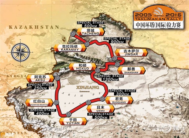 2016年6月15日新疆塔城,第十一屆中國環(huán)塔克拉瑪干沙漠(國際)越野拉力賽正式開幕,賽事日程從5月15日進(jìn)行至5月29日,歷時近15天,歷程長達(dá)6500公里。