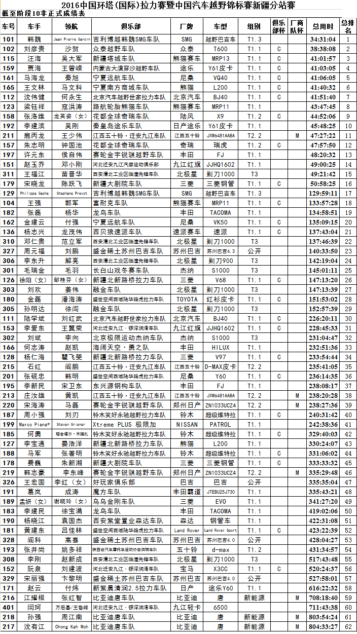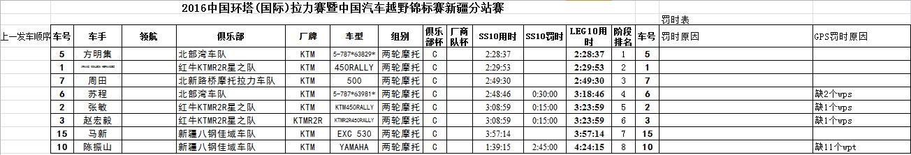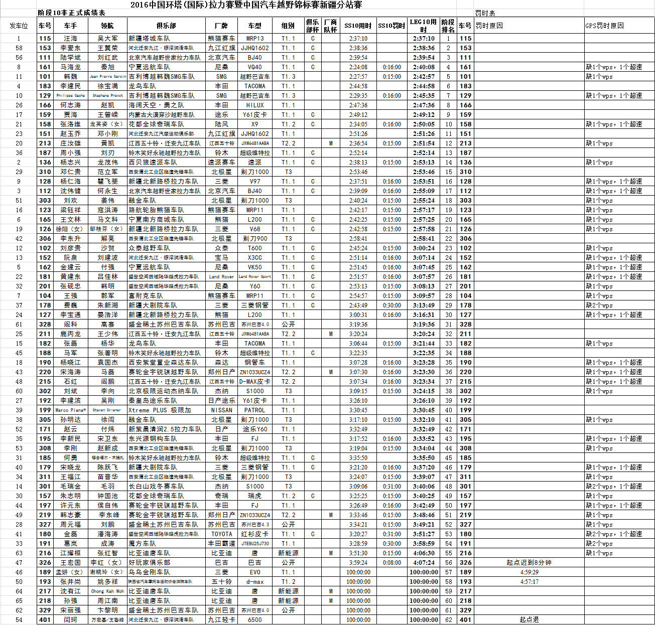 第十賽段汽車組成績排名如下(點擊看大圖):
