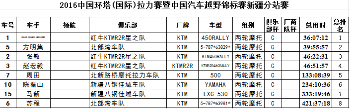 前十賽段摩托車組成績總排名如下(點擊看大圖):