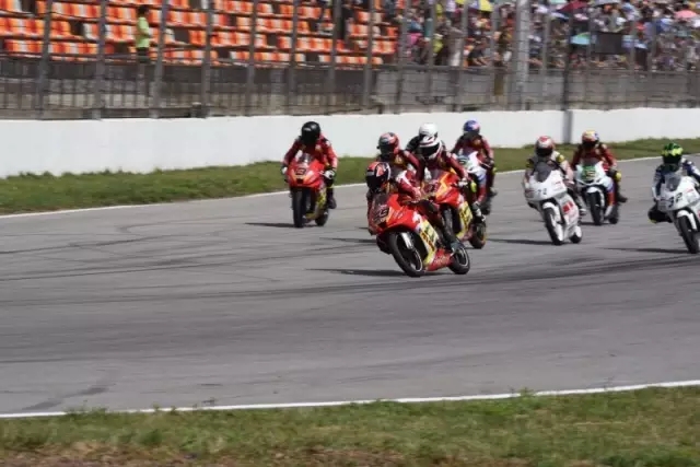 按照排位賽的順序,宗申·賽科龍車隊(duì)59號何智鋒排在第一位發(fā)車,接下的是新感覺車隊(duì)32號莊安育、72號曾建航以及宗申·賽科龍車隊(duì)4號劉君眉。在進(jìn)入第一個彎道之后,這四位車手就迅速與其他車手拉開了距離,形成了第一集團(tuán)。新感覺車隊(duì)莊安育是一位來自臺灣的小將,沖勁十足但相比何智鋒而言大賽磨礪欠缺不少,所以從發(fā)車起他按照何智鋒的出彎入彎路線緊緊的咬在何智鋒的身后,一直是在保持著這個先后的順序位置。