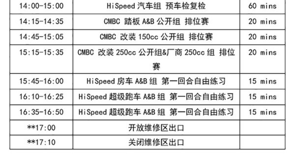 以上為賽事整體安排,請參賽車隊以及參賽人員牢記!!