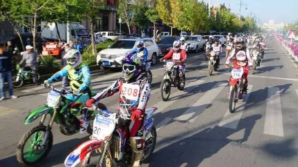活動當(dāng)天,由參賽摩托車組建的12個摩托車隊及越野賽車、工作車等近200輛在北屯市街道上進行巡游。