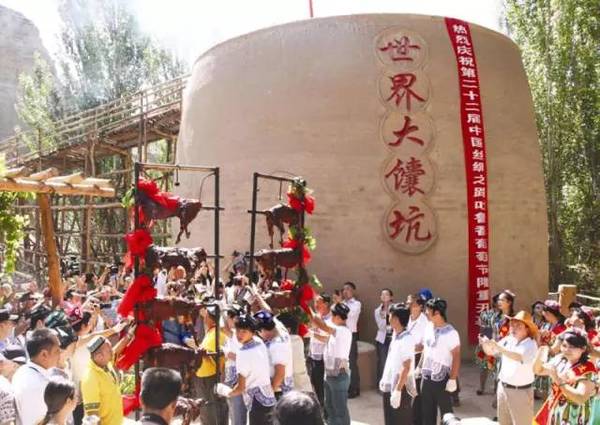 吐魯番市葡萄溝達(dá)瓦孜風(fēng)情園擁有“世界最大馕坑”,一次烤出了十只全羊。這座巨型馕坑主體高8米,直徑10米,烤制佳肴時需要2000公斤優(yōu)質(zhì)無煙煤,200公斤優(yōu)質(zhì)木材,預(yù)熱達(dá)8小時,烤制3到5個小時,吃起來歹歹的...